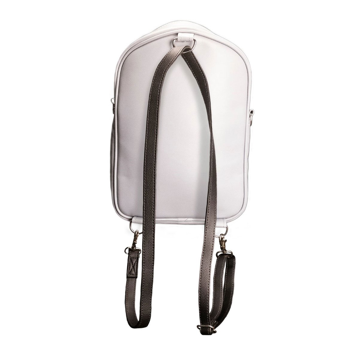 - Features: Interchangeable straps, embroidered details, PVC zipper pull