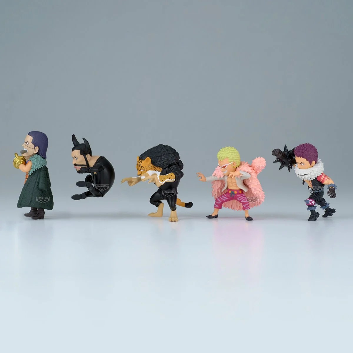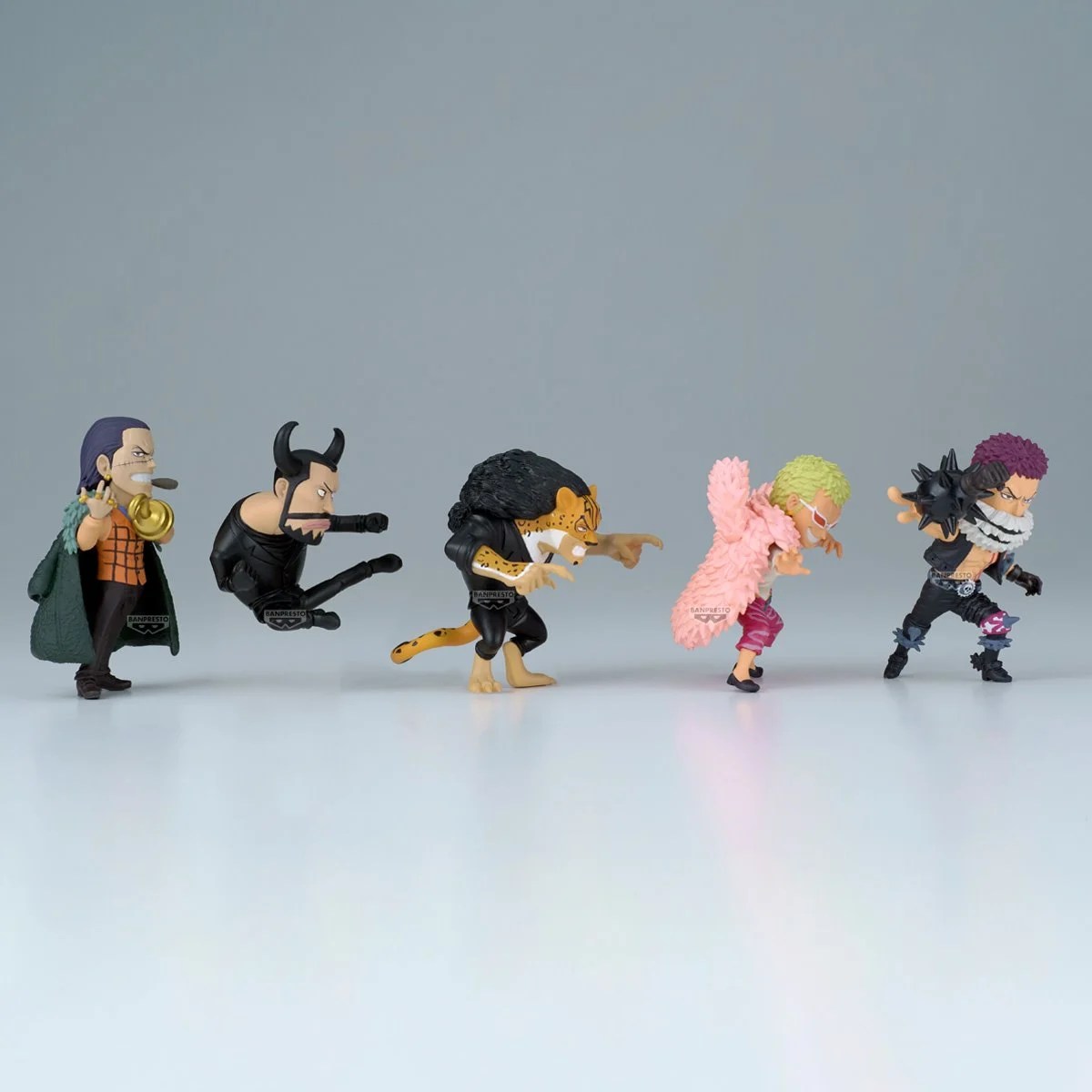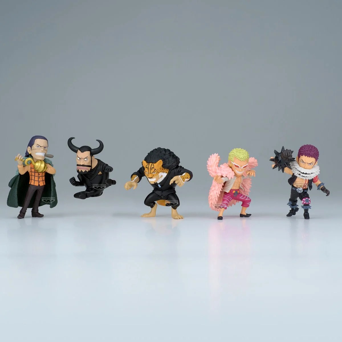The One Piece Rival WCF Mini-Figure Case of 12 by Banpresto features rivals like Crocodile and Rob Lucci in 2.8-inch detailed figures, perfect for anime fans.