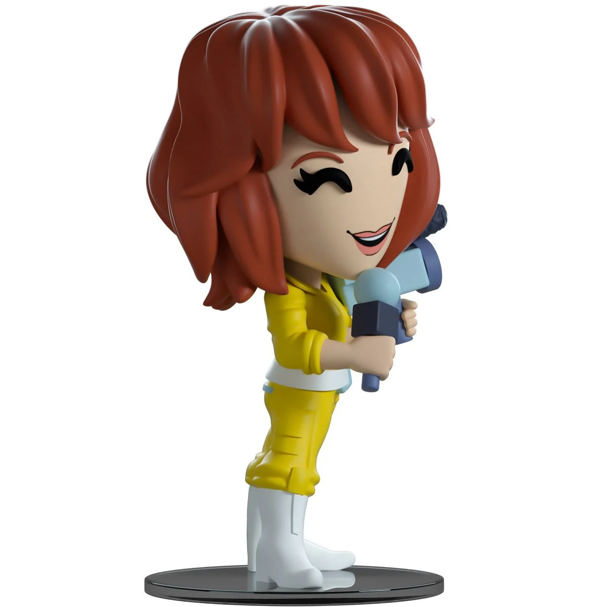 - Iconic Character – April O’Neil in signature yellow jumpsuit with microphone and camera.