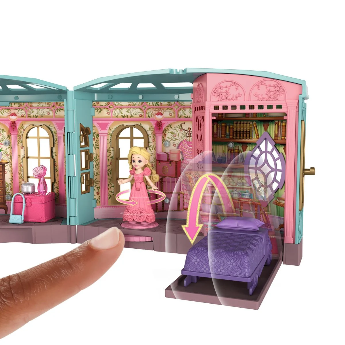 The Wicked So Popular Dorm Playset includes a Glinda doll, 3 play spaces, and 9 themed accessories for magical storytelling fun in Oz.
